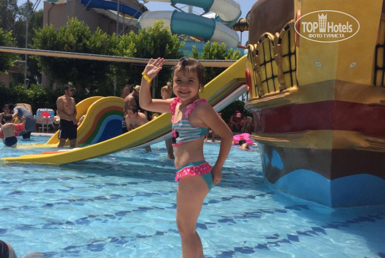 на территории отеля есть аквапарк и там горка большая КОБРА, так вот, я конечно сама виновата, что поперлась на неё с пятилетним ребенком, но хочу предупредить люди это очень опасно! мы с ребенком перевернулись, и чудом избежали трагедии, я очень ушибла локоть, а моя дочка сильно ушибла спину, как же мы перепугались, это ужас, и кстати Вам никто не поможет, там работники стараются создать обстановку, что все хорошо, никто нам не помог кроме отдыхающих, никому из персонала это не интересно. но детский мини аквапарк вполне безопасный, детям очень нравится. И кто поедет кататься на пиратском корабле, я бы тоже не советовала кататься с горки (одна горка с корабля в море) моя мама скатилась и получила сотрясение мозга, очень сильно ударилась затылком, и не она одна!