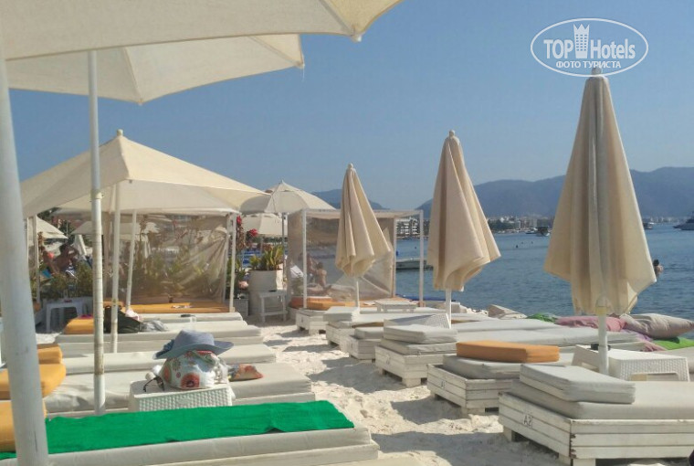 Пляж: городской в пешей доступности 5 минут, но без благ цивилизации, ну только душ и раздевалка. Но 4 раза в неделю в 9-00 утра от отеля возят на пляж 5* отеля, потрясающей красоты, белый песочек, удобные шезлонги и ложе. В своем отеле можно взять талончик на бесплатное питание (картошка бургер/пицца напиток) в кафе рядом с пляжем. Мы не пользовались. Мы уже в 11-30 уходили с пляжа и на маршрутке ехали в отель(2.75 лиры с человека), если не хотите тратиться на маршуртку то в 17-30 вас забирают обратно с пляжа бесплатно.