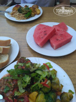 Обед и ужин: они разные, мяса в основном курица и соевые котлеты/рулеты(но я отдыхала в черногории и там даже в 5* отеле очень редко давали хорошее мясо, за границей оно дорогое, например стейк в кафе стоит от 45лир = 15$ = 885р), макароны с фаршем(аля по флотски), спагети, разных видов картошка и овощи, большой выбор как свежих, так и тушенных, так и холодных закусок, достаточно не плохие легкие супы, некоторые даже остренькие, вот десерты честно так себе, но постоянно были арбузы и дыни.