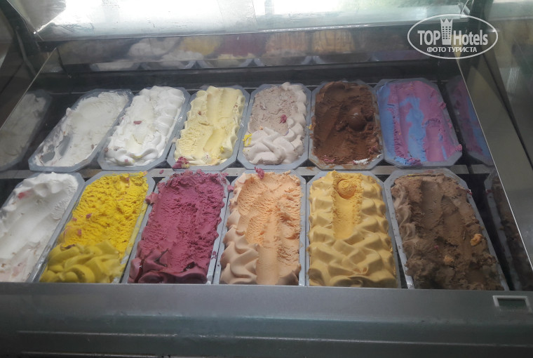 Есть кондитерская. Десерты и торты. Чизкейк.кофе.капучино. в айриш пабе импортные напитки спиртные.мороженое Швейцарское.но тут много мороженого.целый день.и вечер.утром фреш апельсиновый. Ресторан главный не очень. Оооочень много народа.кушаешь в суете.все носятся.как в метро на станции.1 а ля карт бесплатно.в сб в главном ресторане морепродукты.стол искали 30 минут.в итоге с администратором только нашли.но плюсов намного больше. Это хорошая 5 ка. Питание ультра.детей ооочень много.в этом году дети проживают бесплатно.