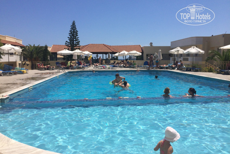 Персонал приветлив, даже очень! Помочь готов в любое время суток. Случилась у нас неприятная ситуация: затопило ванную, так они ночью вызвали из дома сантехника, чтобы он все починил. Молодцы ребята) На ресепшене есть одна девушка, которая учит русский, говорит уже неплохо, учили её русским словам, а она нас греческим. С другими говорили на английском. Бассейн хороший у отеля, глубокий, чистый и для детей лягушатник предусмотрен. Бар около бассейна классный, бармены отзывчивые, все для клиентов делают. Здесь я попробовала одни из самых вкусных коктейлей, потанцевали и даже любимую музыку включили по нашей просьбе.