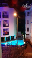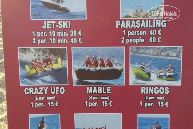 1. Размещение. В отеле 4 пятиэтажных корпуса/блока. Блок А выходит на улицу как раз напротив пляжа 13. Здесь же находится ресепшен, лобби с доступным WiFi (именно поэтому здесь собирается народ , желающий выйти в Интернет)) и очень приятный уголок с мягкими креслами, где можно посидеть с книжкой, взятой с книжного стеллажа. Минус лобби в отсутствии кондиционера , вентиляторы же не справляются с задачей охлаждения воздуха в полной мере. Плюс блока А в том, что сигнал Интернета доходит до верхних этажей и с общего балкона открывается красивый вид на море, пляж, набережную, крепость и горы.. Блок Б, в котором я и жила на 2 этаже, выходит окнами на блок С и таким образом защищен от знойного солнца (по крайней мере, у меня в номере не было жарко). Блоки С и Д после ремонта и, по словам туристов, их комнаты более современные и симпатичные (плазменный телевизор, обои на стенах, где-то даже есть джакузи!). Видимо, фотографии с сайта показывают именно эти номера) В блоке Д находятся ресторан и 2 бассейна (один для детей), совсем-совсем маленькие, поэтому не обольщайтесь, что будете плавать и нырять при глубине в 1,65 м)) Блок Д отделен от других небольшим проулком, и здесь круглосуточно дежурит охранник.
