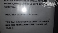В ресторане обслуживание быстрое, официанты очень приветливые и приятные люди. Стараются говорить с отдыхающими на их родном языке. Моментально убирают грязную посуду и делают это очень ненавязчиво. Для родителей с малышами приятная новость - есть детские столы! Это плюс!