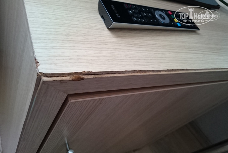 3) Номера. Качество номеров просто ни в какие ворота, как наверно 2 звезды в Египте. Номера маленькие. И не дай бог вас поселят в цоколе, отдых будет испорчен (мы на второй день договорились и переехали на 3-й этаж). Этот запах сырости и плесени, сшибающий вас с ног, вы потом не отмоете с себя до следующего лета. «Бар» в номере – 2 полулитровые бутылки воды и больше ничего (и зачем там холодильник вообще?). Сейф платный. Мебель в номерах отеля вся дешевая, очень старая и покоцаная. С некоторых элементов мебели ламинат просто отслаивается ошметками, обнажая основу, выглядит все страшно убого, как в дешевой деревенской гостиннице. Плинтусов не хватает, некоторые выключатели не работают, двери душевых кабин болтаются и чтобы не текли тупо замазаны комками герметика. Естественно это не спасает и после помывки на полах сан. узлов плещется второе море. Первая из уборщиц убирала из рук вон плохо – забывала вынести мусор, бросая его у двери, не давала туалетной бумаги, хотя ее уже не было вообще!!, не ставила совсем воду в «бар» и косячила по пол-ной. В сан. узле по углам кучи волос как валялись до уборок, так и валялись после нее. Постель поме-няла за первые 5 дней 1 раз. На смену этой клуше пришла вторая, та была поживее и ей доллара на кровати было уже не жалко. На двоих дают два больших банных полотенца, одно полотенце для ног и по одному полотенцу для рук. Меняют вроде как раз в 2 дня.
