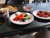 Завтрак всегда одинаков - хлопья, колбасы, салаты, яйца, жареные сосиски, сыры (разные сорта, но брынза есть всегда)