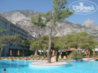 Отель достаточно хороший. Огромная территория, с соснами и пальмами. Огромный бассейн. Все ухожено и чисто. Сзади горы. Питание разнообразное, хотя за 14 дней привыкаешь и кажется уже что и не очень. :) Небольшие неудобства были с температурой в номере ночью. Центр. кондиционер очень не кстати замедляли" и было душновато. Т.к. мы привыкли даже зимой спать с открытыми окнами дома. Обращения, к сожалению, не помогли. Еще из "неудобств" наглые заигрывания со второй половиной и слишком громогласные турки-отдыхающие. Но общее впечатление - можно еще разок вернуться! :)