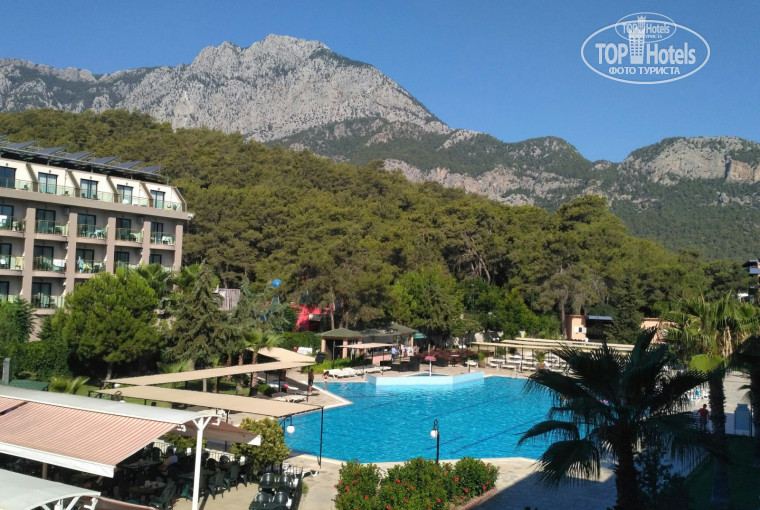 Территория отеля была ухожена, было 4 корпуса. Был прекрасный вид на горы. На территории отеля было 2 туалета: один в лобби, другой у амфитеатра (без туалетной бумаги, один раз видели ее остатки).