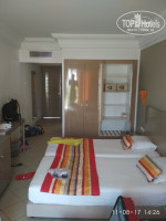 Отдыхали в отеле в августе 2017 года двумя семьями из 3 и 5 человек. 4 взрослых + 4 детей от 5 до 9 лет. Заказали 4-х местные бунгало. Прибыли в отель в 5 утра. Регистрацию прошли в 10 и на рецепшене нам сказали, что свободные номера есть, но за это нужно заплатить. Мы отказались, дождались 14.00, когда нас начали заселять. Бунгало выделили у самых аква-горок, где орет музыка с утра и до ночи, а народу безумное количество. Мы отказались, но с нас снова потребовали денег. Благо, что с нами был человек, у которого язык подвешен так, что он может эскимосам снег зимой продать. После долгих тёрок, мы получили 2 номера рядом в спокойном месте. Заселились спокойно. Номера чистые, имеется кондей (правда днем он еле пашет), телевизор и т.д. Всё соответствует описанию на сайте. До моря 200 метров. Пляж отвратительно грязный, валяются окурки, пластиковая посуда, объедки, а урны при всем этом стоят пустые. Море тоже чистотой не блещет, помимо этого в море очень много медуз. По еде хотелось бы отметить следующее. Очень мало посуды и постоянный очереди за напитками (выдают по 2 стакана на руки, а детям вообще по 1. Причем постоянно требуют денег. Сначала намекали в шутку, а через пару дней говорили в открытую), очереди за первым и вторым блюдами (причем выдают тоже мало). Еда на 3 балла из 5. Что-то полусырое, а что-то наоборот горелое. К мусульманам отношение более доброжелательное, чем ко всем остальным. О аква-парке. Он имеется и довольно большой, НО ходят туда с близлежащих отелей и местные!!!! Очереди сумасшедшие! Травматизм только на детских горках, потому что там за детьми никто не следит, а ходят туда от 3 и до 14-15 летних лошадей! Племяннику там разбили глаз. За время нашего прибывания, на детские горки несколько раз приезжала скорая. О досуге. Вечером для детей устраивается мини-диско, продолжительностью около 1 часа. Вот там ребята молодцы!!!!! Зажигают детей и взрослых! В общем каждый выбирает то, что ему нужно. Мы поехали туда из-за детей. Больше не поедем. И знакомым рекомендовать не станем.