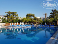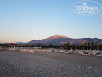 Пляж компактный, затесан между также компактными пляжиками других отелей, отчего создается впечатление чрезмерной многолюдности и тесноты. При этом вроде лежаков хватает, и можно лежать не на головах друг у друга, что является плюсом отеля (под отдельными зонтами удобно можно расположиться, иногда более пятёристые отели не могут похвастаться удобным пляжным расположением). Есть площадка для пляжного волейбола, хорошая.