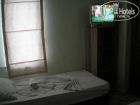 Номер ужасный, просто бомжатник, из плюсов кондиционер и телек с 2мя каналами. Окно всегда завешано шторой потому как оно на уровне пола снаружи и все в него заглядывают.. Шкафов нет, вместо них какие то полки-ниши. Ночью лает собака под дверью а утром в 4.00 начинает орать петухи, спать не возможно. Туалет и душ это одна комната, без каких либо перегородок и штор, можно мыться сидя на унитазе)). Питание 3х разовое, однообразное. Курицу поесть, это большое счастье, рыбы нет. Фрукты: сливы не спелые, за неделю один раз давали апельсины, один раз арбуз и один раз персики. То что не доели с вечера, смешивают с чем либо и дают утром. Три кошки лазят по столам. Отказался от абонирования сейфа и попросил вернуть деньги-не вернули, попросил мыло, что б помыть голову, предложили купить(обращался к Селиму). Всех кто только что приехал и ждёт заселения, разводит на ХАМАМ господин Мустафа(именно разводит, потому как одним говорит одну цену 15 долларов, а другим 20 долларов) , представляясь администратором, хотя он таковым не является. Хамам одна профанация! Пива и вина нет, только платно, есть только водка и джин 37 градусные и то наливают по 30грамм.