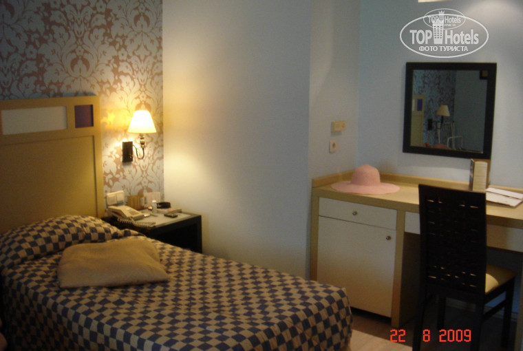 Отель продает Пегас. Долетели хорошо и без задержек (вылет из Шереметьево-2, самолёт - Боинг 747-500 авиакомпании Трансаэро). В аэропорту Анталии долго кого-то ждали в автобусе, часа полтора, дольше всех тусовались, гид попалась нерасторопная. В итоге никого не дождались... Трансфер до отеля прошёл быстро. По пути завезли в 3 отеля народ, наш отель был последним. В отель приехали в 11.30. На ресепшн нам объяснили, что заселят только в 14.00. Такой мол у них распорядок на европейский манер. Можете пользоваться всеми услугами, но в номер - только после 14.00. Люди, которые заехали с нами, предлагали деньги за смену номера и более быстрое расселение. Бесполезняк. Их заселили даже позднее нас. Кому то повезло и заселили раньше. Я так полагаю, что изначально уже за каждым туристом был закреплен номер и поменять его было нереально! Вообще то удивительно, что номер освобождается в 12.00 (евроформат) и аж до 14.00 его приводят в порядок. Очень долго и неудобно. В итоге мы люди переодевались кто где (я - в туалете, например), вещи оставались у входа в лобби (сразу скажу, что за время поездки у нас ничего не пропало) и пошли изучать отель, а потом на обед в 12.00! Заселили нас в 14.15. После долгого перелёта и долгого времени без сна - тяжело! Обращаю внимание на это тех, у кого дети!