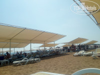 На пляже иногда не хватало места на лежаках, мы ходили на соседний(там поприятнее даже лежаки,с сеточкой).