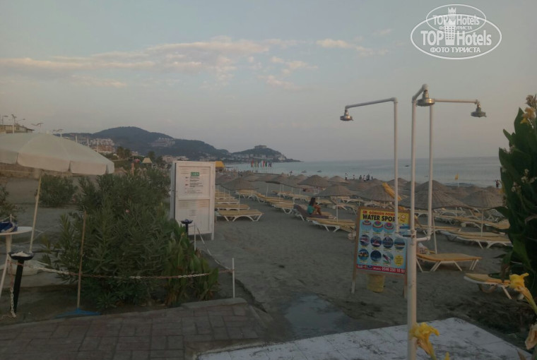 Море. Оно прекрасно, чистое голубое, пляж песчано-галечный. Имеются шезлонги с зонтами, мест хватало всем. Полотенец на пляже нет. Но есть бар. С 11 до 16.00. Там кормят гамбургерами и картошкой фри. Есть овощи и соус. Котлета для гамбургера не очень, сразу предупреждаю. Но все едят))) из напитков безалкогольные (соки, газ.вода, чай, кофе) и пиво. Заход в море вырублен. от Отеля до моря - 2 минуты через подземный переход. На пляже имеются еще души для ополаскивания. Море очень соленое.