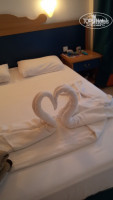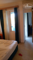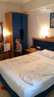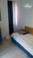 Номера все стандартные: две комнаты ( одна побольше и одна маленькая) и балкон. Мебель старовата. В большой комнате: кровать двухспальная , две прикроватные тумбочки, стол, зеркало, телевизор и холодильник. В маленькой комнате: односпальная кровать и тумбочка. На балконе два стула и сушилка для белья. При заселении выявилось, что не работает дверь в душ, не закрывается дверца шкафа и нет одного банного (большого) полотенца. Шкаф отремонтировали и немного отремонтировали дверь в душ и туалет (совмещенные), но в процессе дверь постоянно заедала. Просто мы старались на это не обращать внимания. А полотенце очень часто одно не докладывали ( то большое, то маленькое, то для ног),но мы не обращали на это внимания, вытирались тогда любым. Душ работал и фен работал. Но кроме этого в ванной комнате была шапочка разовая для душа, ватные палочки и несколько спонжиков. И ещё очень большая слышимость: кто прошёл по лестнице, кто заселяется или выезжает, кто то в номерах говорит или принимает душ - всё очень слышно... Уборка каждый день. Хорошая. иногда украшали кровати всякими украшениями без всяких чаевых.