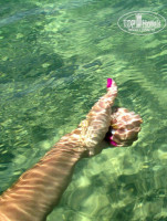 Пляж нормальный, места хватало, шезлонгов тоже, очень мелко, отливы-приливы очень выражены. Есть понтон, длинный, зато в конце нормальная глубина. На мелководье деткам хорошо, а взрослым делать нечего. Есть кораллы, рыбки, да, обувь защитная нужна, дно не очень. Малая по щиколотки в воде ходила, моллюсков, крабиков рассматривала, копалась в песке, ей море понравилось)))