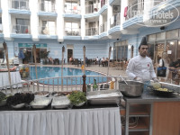В отель нас привезли в 9.30,сразу пошли на завтрак,заселили в 13.50,номер 2124, чисто,уютно,на троих - 3 кровати .Уборкой в номере довольны, убирают одинаково хорошо и за доллар и без). Персонал отличный,на все просьбы реагируют оперативно,мы всем улыбались ,благодарили по-турецки,и к нам было соответственное отношение. Питание хорошее -стараются повара!Официанты с юмором,особенно шустро работают и всегда приветливы Фатих (Таркан) и Омер (Красавчик).Молодцы ребята!А вот официантки девушки убирают плохо,разговаривают между собой громко, выхватывают тарелки и стаканы из -под носа,неряшливы, волосы вечно грязные.До моря 1,5 минуты.Море супер!Лежаки (2евро) и зонты(2евро)платные. Вход в море отличный. На пляже много бычков в песке,люди-свиньи,сами лежат загорают и тут же сигареты в песке тушат,а потом жалуются на грязь.Рядом полно кафешек,канатная дорога,множество магазинов,фонтаны. Отдыхом очень довольны. Хотим приехать ещё!!!