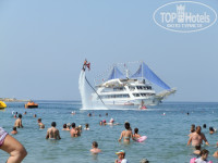 Вот только вернулись 3 сентября, отдыхали в этом отеле с 27 августа по 3 сентября, с ребенком 4,5 года.. Самое первое впечатление от отеля, что отель не тянет на 4*, это седьмой отель по счету данной категории, так что есть с чем сравнивать.Отель занимает большую территорию, состоящую из двух отдельных и разделен дорогой, на каждой есть бассейн, один с горкой, но зная о ротовирусной инфекции, мы бассейны обходили стороной, хотя народу в них было достаточно много.Все описывать нет смысла, т.к. в предыдущем отзыве все подробно описано и чистая правда.Про питание: еды кажется что много, но на самом деле все одно и то же, несколько видов салатов из огурцов и помидор с разной зеленью и по разному нарезанных. Каждый день было мясо курицы, но мы попали в период праздников, и вот тогда было изобилие, но везде были такие огромные очереди, что уже и кушать не хотелось, а так же каждый день на обед и ужин такой гвалд и шум стоял в ресторане(столовой) что уши закладывало.Завтраки очень скудные (есть с чем сравнить) выпечки практически нет, в снек - баре готовили турецкие лепешки гезме, на вкус просто ужасные.(так же есть с чем сравнить)С голоду не помрешь, но удовольствие от еды точно не получишь. Про анимацию: тихий ужас, просто =никакая=, диско для детей каждый день одно и то же, да и слишком поздно начиналось в 9-00 и до 10-00, короче хуже я нигде больше не видела, но детишкам нравилось. Про пляж: лежаки так близко стоят, что протиснуться невозможно, чтоб не задеть отдыхающих, матрацев на всех лежаков недостаточно, и как всегда с утра все занято(дурдом), на пляже везде песок, заход в море пологий, кое где есть небольшое скопление камней на дне и при больших волнах можно получить травму.Море было теплое, температура воды +27, очень порадовало.Пляжные полотенца выдают по карточкам, но я их даже не брала, таскать такую тяжесть в жару, не очень то и хотелось.Про номер: нам достался номер на 2-этаже,мебель конечно уже старая, но было чистенько, санузел работал исправно, проблем не было. Кондей тоже работал хорошо, телек старенький, работало всего 2 русских канала, но нам было не до него, мы приехали отдыхать.Контингент отдыхающих в основном русско говорящий из России, Белоруссии, Украины, Казахстана и местные из Турции.Короче в приоритете было теплое море и солнце, а остальное хотелось бы лучше, но в этот отель я больше не поеду, не впечатлил. Пару слов про гида: от Корал Трэвел был гид Семен, очень высокомерный и амбициозный молодой человек, возомнил из себя неизвестно кого, наш президент так себя не ведет, короче не приятный типаж.