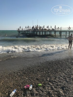 К морю ведет затененная аллея. пляж прекрасно оборудован. Лежаков всегда всем хватало, туалет, переодевалки, душ, краны для ополаскивания ног, напитки - соки, газированные напитки, горячие напитки (кофе, горячий шоколад), Море теплое, утром спокойное, а после обеда почти всегда были волны. Да, заход в море конечно не очень комфортный из-за гальки, но отель эту проблему решил и кому не комфортно можно с пирса попасть в море. Спасибо огромное служащему отеля, который всегда поддерживал чистоту на пряже, такой трудяжка. Ходит весь день метёт, убирает, столики вытирает. Несмотря на то что везде стоят урны некоторые отдыхающие даже не могут удосужиться и убрать за собой.