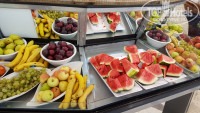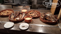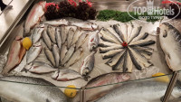 Питание хорошее. Большой выбор блюд. Всегда в наличии мясо (говядина, баранина), котлеты или кебаб, курица-индейка-перепела, рыба. На завтрак всегда в наличии соленая форель, большой выбор сыров, выпечки, нарезки, 4 или 5 видов каш, йогурты и пр.пр. Обед и ужин тем более. Порадовало наличие фрешев на завтрак и обед (яблоко, апельсин, морковь, грейпфрут). Голодным точно не останешься. Главное вкусно и нет проблем с кормление ребенка. Алкоголь на фото. Замечательная кондитерская с мороженым, тортиками и прочими радостями.