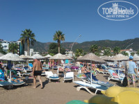 ПО ПОВОДУ ЛЕЖАКОВ. ДА, ОНИ ГРЯЗНЫЕ НО НЕ ТАК ПРЯМ ВСЕ И НЕ ОЧЕНЬ СИЛЬНО ГРЯЗНЫЕ. ВСЕ СТЕЛЯТ ПОЛОТЕНЦА. КСТАТИ О ПАЛАТЕНЦАХ И СВОБОДНЫХ ЛЕЖАКАХ. НЕ ВСЕГДА ЛЕЖАКИ ЗАНЯТЫ БЫЛИ, НУ НЕ ТРЫНДИТЕ ВЫ ЛЮДИ. МЫ ПРИХОДИЛИ И В 8.15 И В 10 И В 16 ЧАСОВ ВСЕГДА НАХОДИЛИ ПАРОЧКУ ЛЕЖАКОВ КУДА КИНУТЬ СВОИ КОСТИ. НО НАХОДИЛИСЬ УМЕЛЬЦЫ КОТОРЫЕ С ВЕЧЕРА ИЛИ РАННЕГО УТРА КИДАЛИ ПОЛОТЕНЦА НА ЛЕЖАКИ И УХОДИЛИ В НОМЕР ИЛИ НА ЗАВТРАК. НА ЗАВТРАК ЭТО ЕЩЁ ХОРОШО, А ВОТ КОГДА ПО ПОЛ ДНЯ ПОЛОТЕНЦА ЛЕЖАТ А ЛЮДИ СТОЯТ, ЭТО МЯГКО СКАЗАТЬ ХАМСТВО. БЫЛО ЖЕЛАНИЕ ВСТАТЬ НОЧЬЮ И СВЯЗАТЬ ЭТИ ПОЛОТЕНЧИКИ, В ОДИН КЛУБОК, А УТРОМ ПОРЖАТЬ. НО ПО СРАВНЕНИЮ С НАШИМ ЮГОМ НА ПЛЯЖЕ ПРОСТО НИКОГО НЕТ. ЗАХОД ПЛАВНЫЙ, ДО БУЁВ ПО ШЕЮ. КОМУ НАДО ПО ГЛУБЖЕ УХОДИТЕ ЛЕВЕЕ. НА ДНЕ ЕСТЬ КРАБИКИ, МОРСКИЕ ЗВЁЗДЫ, РЫБКИ ОТ МАЛА ДО ВЕЛИКА. КАКИЕ ТО КУСУЧИЕ. ЕЩЁ ВИДЕЛ КАКУЮ ТО СОРОКОНОЖКУ.