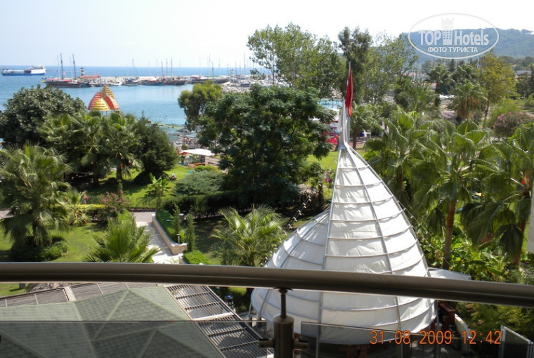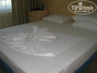 Были с 29.08.09 по 8.09.09. Решение приняли ехать в этот отель в последний момент в турагентстве. Придя домой и прочитав отзывы, ужаснулся. Но всё оплачено. В таком настроении и прилетели. Первое, что сделал по прилёту, положил 20 баков в паспорт. Администратор предложил два номера на выбор. Взял 261. Выходит ровно на центр парка. Поэтому музыки из соседнего Асдема (отеля и их дискотеки на крыше) и караоке-бара на пляже, почти не слышно. Не забывайте, это самый центр Кемера. Поэтому на полную тишину не рассчитывайте. Номер небольшой, но в нём всё необходимое есть. Телевизор, сейф, фен, кондиционер центральный. Кстати, кондиционер работает по времени. Если вы хотите после ужина посидеть в номере, то не рассчитывайте на прохладу. Его включат в 23.00 и выключат около 4 утра. Как раз к завтраку вам станет душновато. Номера по этажам с 1-го по 16-ый называют пеналами. Если честно, я бы в них не хотел находиться. Кондиционер дует прямо в голову, темно в номере, сушилка на общем балконе-проходе. Туда нужно селить молодых парней, которые в отеле не сидят, а приходят только под утро и им всё равно где подремать пару часов. Но если хочешь переселиться, то подходи и требуй другой номер, и если есть свободный (а уезжают с утра многие), то тебе его дадут. Кстати, индивидуальные кондиционеры, только, на 4 этаже. Убирали и меняли полотенца с бельём, почти каждый день, хотя не просил. Но раз в два дня оставлял 1 доллар. Но возвращаясь в номер перед обедом, приятно увидеть на постели выложенные уточки, сердечки, цветы и т.д.