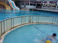 На второй день пребывания у нас в номере случился потоп - из унитаза хлестала вода на пол, заливало все!!!Телефон в номере не работает, мы бегом вниз на ресепш, говорим, что у нас авария, воды по щиколотку, все течет в номер и на нижние этажи, но видно там к этому привыкли...мастер пришел через полчаса и просто перекрыл воду, уборщица воду не собрала, она просочилась ниже. Мы остались без "стратегического " места на 2-е суток, попросили дать нам временно номер для пользования туалетом, на что администрация ответила идите в туалет на пляж или на 1 этаж в общий!!!