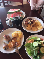 Питание здесь трёхразовое. По сути, серьезно, завтрак, обед и ужин. Завтрак: 7:30 - 9:30, обед: 12:30 - 14:00, ужин: 19:00-21:30. Выбор еды нормальный, голодными точно не останешься. Разнообразие каждый день. Дают свежие фрукты - арбуз, дыня, виноград. По утрам - тосты, вареные яйца, каша, два вида джема, шоколадная паста, чай/кофе/горячий шоколад. На обед есть суп, мясо/рыба (чаще всего это курица, но был также кролик, свинина, говядина, баранина), на гарнир - рис, макароны, пюре. Есть салаты разные. Ужин примерно такой же. Из напитков - газировка, сок, вино.