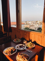- "панорамный кондиционируемый ресторан отеля предлагает посетителям блюда традиционной греческой кухни" - если открытые окна можно назвать кондиционером, то да, ресторан кондиционируемый. По утрам и днем в ресторане стоит дикая жара.