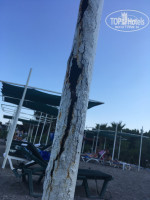 -Что касается пляжа, шезлонгов на всех не хватает. С утра пораньше нужно идти занимать место, иначе придется загорать в номере. Шезлонги занимают и у моря и у бассейна. Все навесы на пляже порваны, и прогнили. Фото прикрепляем. Вход в море огромные камни, можно поранить ноги и там плавают рыбки, которые кусаются если не двигаться.. Поэтому большинство детей купались в бассейне. Спасает только причал(который тоже в аварийном состоянии), откуда можно спуститься по лестнице сразу на глубину.
