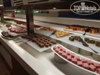 ПИТАНИЕ. Ресторан огромный, места есть всегда, даже в разгар сезона. Я несколько раз обсуждала с мужем, что толпы в ресторане приличные, но при этом всем есть места, ни разу не приходилось ждать, всегда есть свободные столы, и в помещении и на улице. В ресторане нет мусора, постоянно ходит уборщик, подметает всё, что упало на пол. Столы чистые, приборы всегда лежат на столах, ни разу не искали, во сколько бы не приходили. Мы чаще всего сидели за одними и теми же столиками, хотя приходили в разное время. Очереди есть не за всеми блюдами, муж не стоял ни разу, находил туже самую еду в центре зала в свободном доступе. Я стояла несколько раз за бараниной, не больше 3-5 минут. Очередь за бараниной, потому что при нас её разделывал шеф-повар (которого одни дамы обозвали медленной бабушкой, вот потом верь их отзывам, если они даже мужчину от женщины отличить не могут, хотя там всё явно на лице написано). Очень вкусное мясо, не пахло. В отдельном помещении делают блюда на гриле. Мы первый день не знали, что мясо в основном там, и не могли понять как в таком огромном отеле нет мяса, только курица)))) Муж даже сходил к поварам на кухню и взял себе мяса)))) Они конечно офигели, подсуетились, чуть ли не все виды мяса ему предложили. Вышел с кухни с полной тарелкой мяса, он у меня голодным не останется)))))) Кстати, первые дни, гриль и блинчики готовили в общем зале и такая копоть была и очереди, а когда перенесли в отдельное помещение, и очереди рассеялись (очень редко были) и копоть прошла. На гриле очень вкусные овощи, мясо всё вкусное было. Панкейки (оладьи без масла) утром готовили тоже тут же, а так же яичницу. А так же там можно было самим делать тосты. В общем зале был омлет, вареные яйца. Каши, но я не ела, дома надоели. Сыры, колбасы, сливочное масло. Сыр ела только одного вида, они в основном соленоватые и кистоватые, а я люблю сладковатые сорта. Колбасу ела светлую с вкраплениями овощей, куриная видимо, чем-то напоминает куриный рулет, когда ешь, чувствуешь мясной вкус, а не чего-то непонятного. Красную колбасу не ела, как-то не особо понравилась. Нереальный по вкусу хлеб, булочки, обожала лепешки из печи. Почему у нас нет такого вкусного хлеба даже в самых лучших пекарнях не умеют у нас печь такой хлеб и булочки. Фрукты есть 3 раза в день. Причем арбуз есть даже на завтрак. Не люблю яблоки, но тут ребенок настоял, чтобы я попробовала красные яблоки, т.к. они нереально вкусные, вытянутой формы, слаще яблок я никогда не ела, действительно очень вкусные. Сливы мне не очень понравились, жестковатые, не сладкие. Персики ничего так, но не сладкие, такие же как у нас продаются. Абрикосы были зеленые, даже не брала их. Апельсины и арбуз вкусные, сладкие. Дыня, когда как, иногда ничего, иногда зеленоватая. Виноград обалденный, всех видов был очень сладкий и вкусный. Но на него чаще всего не хватало места))))) так же как и на арбуз. Разнообразное и обильное питание. После завтрака муж несколько раз не ходил обедать. Или съедал 1 яблоко или персик. Ребенок тоже не хотел есть. В обед мы еще не проголодались. Я потом стала кушать на завтрак порезанный кусочками арбуз с натуральным или вишневым йогуртом, добавляла ягоды вишни, порезанный персик. И в обед я могла уже полноценно покушать. Мяса было полно говядина, курица всевозможных видов, баранина, кролик, свинину не помню. Тушеная говядина иногда таяла 