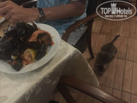 Изначально я хотела остановиться в Бечичах, но там не подтвердили бронь. Тогда я прочитала про Рафаиловичи , что это приятный маленький курорт с самым лучшим пляжем , и обилием кафешек и магазинов, где можно вкусно и дешево поесть ( дешевле,чем в Будве). Вот это не так. Магазин в Рафаиловичах из сетевых только один- Идея. Она находится в двух шагах от виллы , рядом с отелем Обала, где можно брать питание и где у нас была встреча с куратором от библио глобуса. Это маленькая Идея. В первый раз мы жутко голодные поели в самой ближайшем кафе через улицу- название я не помню, но это в здании , где miron rooms. Вы узнаете сразу же ее-там еду выставляют на стеклянные витрины, веранда открыта и без единого человека-только персонал сидит весь день и пьет кофе , курит ( курят тут куда ни глянь ,это всюду разрешено ). Мы заказали плескавицу, куриный шашлычок и картошку фри, салат, воду. Вместо салата нам принесли блины, еда была в принципе ничего, но очень жирная, масло прямо стекало со всего. По полу бегал огромный таракан. Больше мы там не были, и проходя мимо только 1 раз увидели у них клиентов. Вдоль пляжа мест для еды больше. Если выйти из виллы, дойти до моря(пара минут) и повернуть налево- в ряд идут рестораны. Опять же в первый день(не очень он выдался удачным), мы зашли в ресторан PORAT , куда нас заманили , пообещав за 40 евро огромную тарелку морепродуктов и рыбы на двоих. Мы так брали обычно на Кипре за ту же цену, и там весь стол уставляли различной рыбой. Тут же за 40 евро была одна костлявая рыбешка, 2 креветки, 2 маленьких кальмара, и гора мидий, в которых либо была совсем крохотная мидия, либо раковины были пустые. Зато это блюдо было набито картошкой и кабачками, которые я терпеть не могу. В общем даже этот скудный ужин я скормила местной кошке, которая ходит между столиками и просит еду. Единственный хороший момент от этого Пората- кошка поела.