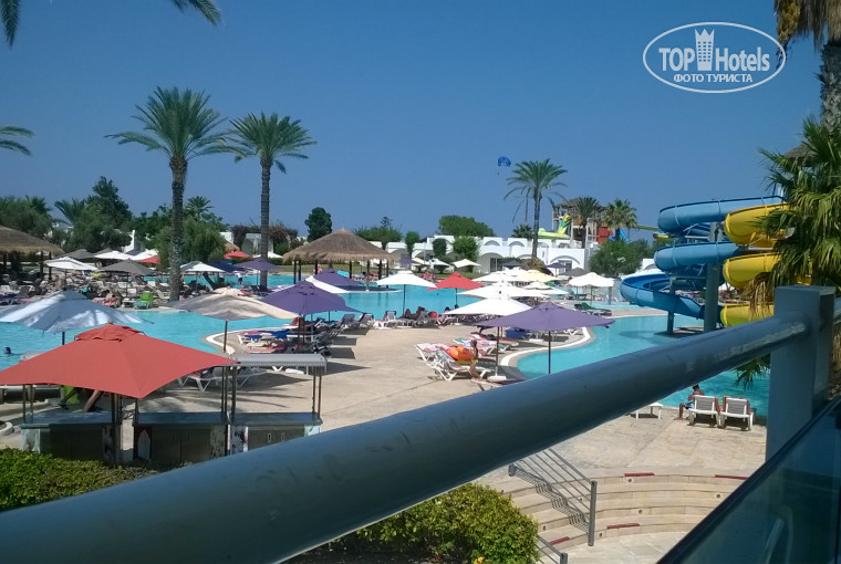 Тунис взяли на замену Турции из-за Коксаки, как и многие другие в этом отеле судя по разговорам на пляже. В целом отель понравился - красивая и большая зеленая территория, огромный аквапарк с профессиональными спасателями, прекрасное теплое море и белый песочек, вооруженная охрана на пляже (периодически курсировала вооруженная полиция). Аниматоры старались, питание разнообразное, но иногда не хватало тарелок и бывали очереди за барбекю. Алкоголь вполне достойный, правда пиво на любителя. Жили в бунгало - 2 взрослых и 2 ребёнка, сам номер уютный, но мебель старовата и засалена - требует обновления, 2 дня бежал унитаз - но слава богу починили, кондиционер и тв (2 российских канала) работали исправно.В целом отель полностью соответствует заявленным 4 звездам, самое главное никто из детей не болел.