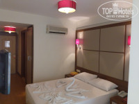 Отдыхали парой с 1 по 12 сентября 2017г. Хочу выразить благодарность сотрудникам отеля за гостеприимство и доброжелательное отношение - спасибо Вам за наш комфортный и беззаботный отдых! Отель полностью оправдывает 3*. Заселили в корпус С.без каких либо доплат. Номер небольшой,но все аккуратно.чисто,все работало. Уборка номера каждый день,белье меняли каждые 3 дня. Питание для 3* нормальное: завтраки - стандартные турецкие завтраки (яйцо,омлет или яичница. запеченые помидоры,оладушки были пару раз.несколько видов сыров,джемы.хлопья и тп..Обед - супчик.на второе рис,картошка.макароны.гуляш из говядины тоже был пару раз,курица в разном виде ,рыба.Много зелени,салатов. Все свежее.вкусное. Но,большее разнообразие было бы плюсом! В баре брали в основном пиво - вкусное,вино белое,красное - пить можно. Напитки кола,спрайт,фанта. Из плюсов хотелось бы отметить: 1 - приветливый персонал,особенно в ресторане, удачное расположение отеля,пляж. Из минусов- плохой WiFi на ресепшен,платные лежаки на пляже,маленький бассейн-его практически нет! и мечеть рядом - ранний подъем вам обеспечен!