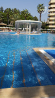 Всем доброго времени суток! В Турции отдыхала 4й раз (за последние 10 лет), в этот раз ездили семьей - я, сын 4 года и муж. Отдыхали с 9 сентября по 16 сентября 2017 года. Выбрали этот отель по рекомендациям друзей, они отдыхали здесь в мае 2017. Сразу скажу, мне есть с чем сравнить! Это один из лучших отелей, где я была. Летели из Челябинска турецкими авиалиниями туда и обратно - Onur air. Все без задержек ни на минуту, полет отличный! Прилетели в Анталию в 5 утра, быстро прошли паспортный контроль, получили багаж и сели в автобус. Прилетели, было еще темно. Далее ехали полным автобусом без остановок. Наш отель был самым последним, но! Доехали за час с небольшим! И это из Анталии до Алании! Обычно дорога занимала от 2х часов. Минус один. По правилам международного размещения в отелях 14ч. Прибыли в отель в 6:35... Сразу нас оформили, отправили на завтрак. Чемоданы оставили на ресепшн. Подходили несколько раз к менеджеру, в надежде, что заселят...но бесполезно ждать раннего заселения. Либо оплати дополнительно и разместят сразу, либо жди, как оно и положено 14ч. Успели вдоволь накупаться в теплом море, пообедать, позагорать. В 14ч дали номер, 5 этаж, номер 3544. Вид на дорогу. Не советовали брать номер с видом на море, т.к.по вечерам начинались танцы, анимация и тд, ребенок бы не отдохнул да и мы тоже. Номер огромный, 2 большие удобные кровати - высыпались отлично. Мы их сдвинули вместе, получилась одна огромная кровать, на троих места было более, чем достаточно. Диван, кресло, большое зеркало, жк телевизор, большой сан.узел. Уборка была у нас ежедневная, без напоминаний, как некоторые писали в своих отзывах. Ежедневно меняли полотенца. Не пойму возмущений по поводу питания...кому там не хватало еды?))) Ребят, ультра все включено, не ешь, только когда спишь))) Да, в обед и ужин, если прийти попозже-очереди у гриля. Но всем все хватало! Отель был полон народу: русские, украинцы, азербайджан, белоруссия, турция. Все жили дружно))) Еды с избытком хватало всем! Кормили вкусно и разнообразно. Из мяса - курятина, говядина. Почти каждый день форель на гриле, шаурма, безумно вкусные лепешки гезлеме (готовят бабушки днем, после обеда, если идти в сторону бассейна с фонтаном). Овощи в разном исполнении. Из фруктов - апельсины, грейпфруты, яблоки, груши, арбузы, дыни, виноград. Выпечка супер! Торты, национальные сладости. Чай хороший из чайничков. А вот кофе - редкостное фу. Первый раз я пила в Турции ужасный кофе с бодяжным сухим молоком. Попробовав один раз, больше ЭТО не пила. Даже в категории отеля 4*, я пила настоящий кофе с молоком... напитки из порошков, это типа соки - тоже ерунда. Очень вкусный коктейль пина-колада. Пиво вкусное. Вино мне не понравилось. Я любитель легких напитков, для меня кисло и крепковато...Муж пробовал раки (турецкая водка), виски, ром-говорит неплохо. Мороженое всегда дают с 15 до 17 часов. Тоже всем хватало! Лежаков достаточно. Полотенца для лежаков выдавали на этаже S, каждый день. Море...теплое безумно! Погода комфортная в это время, +35 днем и +23 ночью. По вечерам гуляли. Шли через мостик, на базар. Накупили домой родным сладостей на вес, сувенирчиков и тд. Всего в изобилие. О коксаки не слышали! По-моему это бред чистой воды и антиреклама Турции, чтобы россияне ездили на наши курорты...Мой сын плавал во всех бассейнах, единственное говорила ему, чтобы воду не глотал,а если попала, то выплевывай. 