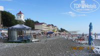 На пляже выдают пляжные полотенца. Пляж крупногалечный. Без тапочек заходить в мое сложно. На пляже Лежаки, навесы. Минус: не хватает лежаков и места и под навесами. Чтобы занять место по навесом , нужно приходить до завтрака. Иначе будешь жарится на солнце на камнях. Администрации отеля необходимо подумать о постройке дополнительных навесов.