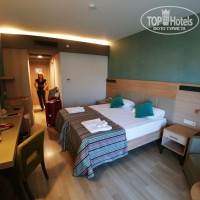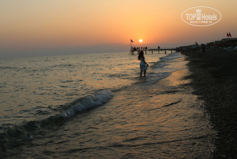 Добрый день, мы отдыхали в отеле с 2 по 13 сентября.Без проблем добрались до Турции,;нас встретили в Аэропорту и с комфортом довезли до отеля. В отеле сразу же получили ключи от номера,;молодой человек проводил нас туда с нашими чемоданами, он объяснил нам как пользоватьсясейфом, кондиционером и т.д.. От номера мы были в восторге, на столе стояла ваза с фруктами и бутылка красного вина. Новая красивая удобная мебель, шикарные люстры и лампы.Продуманна каждая мелочь. Всё выглядит дорого, очень удачно подобрана цветовая гамма, большой респект дизайнеру.Шикарная ванная комната, новый хороший фен , зеркало с увеличительным стеклом.Огромная стеклянная душевая кабина, белоснежные мягкие полотенца. В ванной комнате много всяких пузырьков, крем для бритья, бритва, зубная паста и щётка, банный халат и тапочки, ничего не нужно с собой брать. Уютный балкончик с видом на море, очень тихо. В холодильнике всегда стоит минеральная вода, фанта, кола и соки. В комнате два удобных огромных шкафа с зеркалами для вещей и красивый диванчик с журнальным столиком. Во всем отеле красивая декорация и огромная шикарная лестница перед входом в главный ресторан. В ресторане большое разнообразие еды, всё очень очень вкусно. Много разных напитков, как холодных ьак и горячих, разнообразие фруктов и сладостей, очень вкусные дыни и арбузы. Так же есть ресторанчик который открыт всю ночь. Там же же находится уголок для маленьких детей, где всё оборудованно под их рост.На территории отеля два бассейна, один с водными массажами где можно полежать в тишиге, а второй с горками, музыкой там же проходит гимнастика и развлекают аниматоры.. по всей территории отеля стоят холодильники с водой и айраном. К морю идет теннистая отеля и 40 градусовжары совсем не чувствуются. Большой чистый красивый пляж, там тоже есть ресторан и очень вкусная пицца. Можно покататься на лодках, банане, полетать на парашюте, поиграть в футбол, волейбол и другие игры. Что очень важно хороший велан на территории всего отеля. По понедельникам проходят пенные дискотеки с музыкой на море и в пятницу вечером в бассейне с цветомузыкой грилем и коктейлями. Очень очень весело. Большую часть отпуска мы провели на пляже, море чистое и тёплое.по вечерам анимации, всегда что то происходит, из отеля выходить совсем не хотелось. Персонал приветливый, всегда улыбаются, нас тепло встретили и тепло проводили, взвесили в отеле чемоданы и с комфортом отвезли в аэропорт. В целом было всё как в сказке, спасибо за прекрасный отдых
