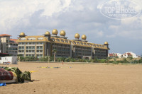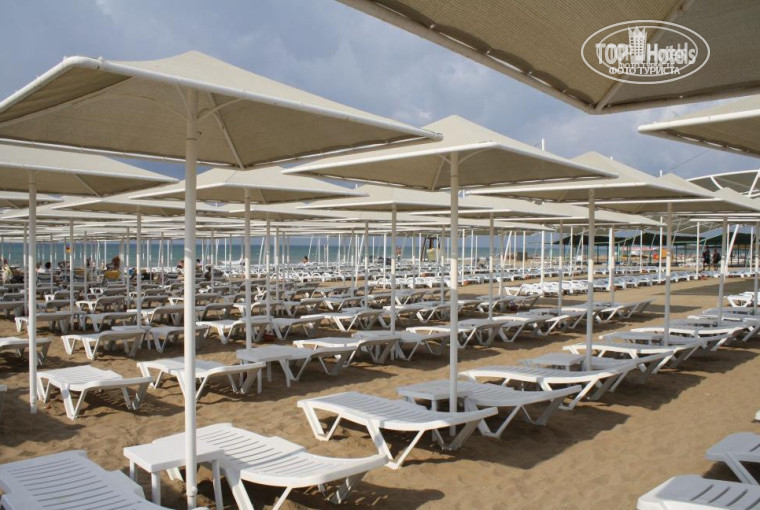 Пляж для детей отличный, песок, мелко, но не совсем чистый. Лежаков полно, но не всегда были в наличии матрацы, приходилось ждать пока привезут. На пляже бар, пиво, вода в наличии. :)