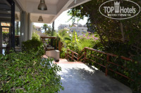 Территория: всю территорию видно на фото, да она маленькая, но что еще нужно если вы находитесь по сути в центре города? Как раз таки все рядом, под рукой. Она очень зеленая, уютная, в этом плане одно удовольствие. Живой изгороди нет только за баром, там можно сидеть за столиком и смотреть в даль на улицу.