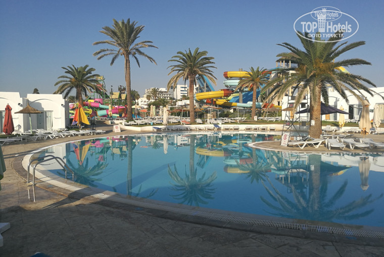 Итак, все по порядку: Если вы приезжаете рано утром, то будьте готовы провести время в лобби до 14.00 местного времени, даже если у вас маленькие детки, никто не пойдет вам на встречу с предложением заселить вас пораньше, если конечно вы сами не подойдете и не предложите некоторую сумму денег. Персонал на ресепшене не отзывчивый, но это раздражало только до момента расселения, потом мы с ними практически не общались, так что минусом этот факт назвать не могу. Заселили нас в бунгало (очень круто, но за доп.плату, но мы все равно не пожалели), номер большой, две кровати полуторки и одна двуспальная, телевизор старый без пульта (практически не включали). Ванная комната большая (унитаз, ванна, раковина и каменный туалетный столик). В ванной комнате много муравьев, но так как мы приходили в номер только спать и не приносили в номер еду, этот факт нас нисколько не расстроил. По поводу ремонта номерного фонда его не было очень давно, но все в рабочем состоянии и чистое. Сейф в номере платный (возьмите обязательно) 4 динара в день, но зато ты спокоен что не останешься без денег и документов (гаджеты тоже оставляли в сейфе). Уборка в номере никакая, то есть вы не заметите разницы до уборки и после нее, бельё за 10 дней меняли 1 раз, если вы патологический чистюля, то это очень большой минус, полотенца из номера уносят и не приносят, пока вы не попросите, но для нас это были мелочи на которые мы не обращали внимания. Теперь по поводу питания: Еда отличная, разнообразная, вкусная, но САМЫЙ БОЛЬШОЙ МИНУС это огромные очереди (раздача каких то особых блюд, приготовленных на гриле - обед и ужин, раздача яичницы и омлета - завтрак) и отсутствие тарелок. Если нет очередей, значит нет тарелок и вокруг грустные голодные глаза туристов. Конечно если бы сами туристы не набирали тарелок с запасом (из стопки чистой посуды по три-пять штук, так на всякий случай) то наверное такого ажиотажа не было. На завтраке эта проблема менее актуальна, если вы приходите рано. На обед мы решили эту проблему следующим образом, записались на все последующие дни в ресторан на пляже (это бесплатно, можно каждый день, но только на обед), разнообразие блюд поменьше, но нам было достаточно. На ужин вы можете записаться в три ресторана (Тунисский, Ливанский и Итальянский) по одному разу в каждый, но нам в этих ресторанах не понравилось. Во всех ресторанах, кроме Ливанского, дают те же самые блюда что и в основном ресторане, только без выбора а по меню (суп, второе, салат). В Ливанском ресторане нам понравилось, там готовят прямо в ресторане, там чувствуется какой-то национальный колорит. По поводу баров: тоже очень большие очереди и одноразовые маленькие стаканы. Ты стоишь в очереди минут 15, тебе дают маленький стаканчик напитка, ты его быстро выпиваешь и можешь снова вставать в конец очереди. Но наши соотечественники русские туристы нашли решение и этой проблемы: в магазинчике на ресепшене продаются большие пластиковые стаканы (прим.0,4л.) за два динара, туристы их покупают и ходят за напитками с этими стаканами. Мы сначала не понимали, почему все ходят с этими пластиковыми цветными стаканами, но потом до нас дошло и мы тоже купили парочку. По поводу алкоголя: он там местный но хороший, не разу ни у меня ни у мужа не было головных болей или расстройства желудка, хотя муж пил алкоголь с утра до вечера и разный (не 