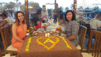 Ну так вот, мы пришли к назначенному времени, и... мы оказались в абсолютном восторге. Наш стол был выложен цветами в виде сердца, в середине которого красовалась буква А, в честь имени моей мамы (которое Осман разведал у меня по секрету на обеде), из салфеток были сооружены павлины, нас также ждала бутылка шампанского.