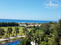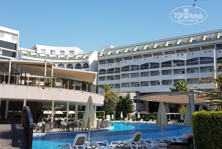 Отдыхала с мамой, маме 71 год. Ночной перелет с авиакомпанией Азур-эйр. Кресла не откидываются, 4,5 часа в вертикальном положении, обратно летели так же, сделала вывод все самолеты этой авиакомпании имеют такую "особенность". В отель прибыли в 9 утра, заселение пообещали не ранее 14.00. Попросила дать номер с учетом того, что у мамы больные ноги и спина, тяжело ходит. Девушка на ресепшен хорошо говорит по-русски, пообещала помочь. Нам одели браслеты и отправили на завтрак. Заселили в 11 утра, номер дали ужасный – в самом дальнем углу коридора, маленький, мрачный, с темной дощатой мебелью. Кроватей было 2 – одна 2-спальная и детская в 2-уровнях. Мама моя женщина очень грузная и я никак не планировала что у нас будет одна кровать на двоих. После долгих переговоров девушка на ресепшен «с трудом» нашла нам другой свободный номер за взятку в 50 долларов и ни цента меньше. Пришлось согласиться – у мамы давление, переклиматизация, было страшно рисковать ее здоровьем… Второй номер был хороший – светлый, просторный, с большим балконом и полноценной 2-спальной и 1,5-спальной кроватями. Кондиционер центральный, вполне нас устраивал. Сейф платно, 1,5 доллара в день. Вай-фай в зоне ресепшен и лобби-бара бесплатно, в других местах платно. Уборка в номере как попало – уборщица появлялась раз в 2-3 дня, пол в пыли, постель заменили 1 раз, сантехника не моется…. Но это у нас такая «трудяга» была, на других этажах уборщицы работали хорошо. Питание меня вполне устроило – все из свежих продуктов, выбор мяса различного приготовления, фруктов, овощей, различных сыров. На завтрак был натуральный мед в сотах. НО ВОТ….!!!!! Стыдно за наших соотечественников, которые приходят каждый раз в ресторан с пластиковыми контейнерами, нагребают их полными медом, орехами, курагой и всем прочим, сливают оливковое масло со столов и прут домой…. Не позорьтесь, господа, и не позорьте свою страну, ведите себя достойно – раз вы нашли деньги чтобы приехать на отдых за границу наверняка не последний хрен доедаете без соли! Самое смешное наши как обезьяны – одни гребут, и другие глядя на них начинают, и вот уже целая вереница с кастрюльками тащится из ресторана. Продолжим про отель. До пляжа минуты 3-5 ходьбы, по подземному переходу через дорогу. Лежаков много, матрасы, навесы, душ, туалет, бар – все есть, все поддерживается в чистоте. Море чистое, но очень сложный вход в море – высокая насыпь из гальки, сразу глубина и волны. Детям и пожилым самостоятельно не справиться. Бассейн большой, вокруг бассейна места много, всем хватает, лежаков тоже достаточно. Есть горки. Для детей небольшой детский городок. Анимация очень слабая – утром у бассейна небольшое приветствие, далее до 12 звучит музыка, иногда веселая ))) и с 15 до17 час. Вечером иногда типа «шоу» в амфитеатре и все. Мини диско за 2 недели было пару раз. После ужина вечерами туристы в тишине зависают в лобби-баре и в баре у бассейна, музыки нет. Приняв хорошую дозу алкоголя некоторые включают музон на телефонах ))). Из отдыхающих большинство русские, затем идут немцы, турки, англичане. Резюме: Рекомендую, если вы любите проводить вечера в тишине с бокалом спиртного в руках, либо просматривая наши тупые сериалы в номере ))) Отель в целом хороший, но скучный. Второй раз не поеду.