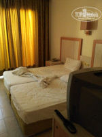 Доброго времени суток тем, кто возможно прочитает мой отзыв и сделает соответствующие выводы. Сразу скажу, не понимаю этого бешеного рейтинга для этого отеля, рейтинг явно завышен... Вообще-то "Пегас" позиционировал этот отель как 3+...Никаких плюсов, тройка.. Обыкновенная тройка.... Из плюсов - расположение, всё рядом, пляж "Клеопатры", куча магазинов и кафешек.... Отель городской, никакой территории, маленький бассейн с 6 шезлонгами и всё, отель старый, мебель старовата. Да, из плюсов, наверное, ванная комната, точно на 3+...Стены никто, видимо, никогда не протирал, в налёте и плесени... Ну, это не особо напрягает. По питанию, всё как во всех отелях Турции 3-4*, голодных обмороков не случалось ни у кого...))) Детского питания никакого, никаких кашек и тому подобного.. На завтрак яйца, или омлет, зелень, овощи, сосиски, колбаса, 3 сорта сыра, масло, джем. Кофемашина, чай заварен в бойлере... На обеды частенько была рыба, их нагетсы, непонятные медальон из соевого фарша, на гарнир либо рис, либо картофель, супчик одного типа, но каждый день разный и т. д., из фруктов - арбузы и дыни, яблоки, часто зелёная слива, апельсины, редко виноград, всё без особых изысков, да оно и не надо, не есть же мы приехали, а за солнышком и морем... Алкоголь местный и пиво, вполне неплохое. Море через дорогу, хорошее, чистое.. После обеда, правда, бывало приносило водоросли и мелкий мусор, но не критично... По поводу захода в море, на пляже #13 песок весь вымыло, при входе скользкая плита, но над плитой плавают рыбки, весело...))) И даже целые косяки рыб приплывают.... Мы ходили на 4 пляж, чуть дальше, но после завтрака это даже на пользу, там хороший заход в море - песочек и пара камней, рыбки также плавают...