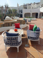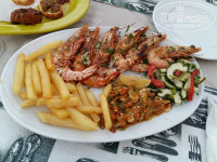 Поблизости есть маленькие магазинчики и супермаркет, уютный ресторанчик с террасой, называется Дельфин, за 20 динар можно заказать 6 креветок с местными овощными закусками