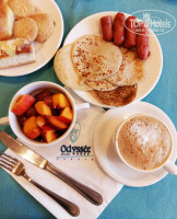 Дорогие пользователи, особенно те кто уже купили тур в Odyssee! Расставляйте приоритеты) Если Вам достаточно замечательного питания и бассейна, то добро пожаловать. За чистым морем - не сюда. Возможно для деток, которым мелкое морюшко в радость и прокатит, но всё же водоросли и специфический запах от огромных куч морской флоры малышей всё же не радовали. Даже с понтона глубина достигала уровня чуть выше пояса, соответственно и цвет моря не привычный для Средиземноморья, возможно как раз из-за мелкоты.