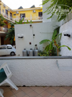 Вид с балкона - не знаю как это можно охарактеризовать правильно... Фундамента у сарая нет, комната находится непосредственно на земле. Загородка, которая обозначает балкон/террассу на улице стоит на земле. Просто загородка. Вид на стену и три газовых баллона! Т.е. стена отгораживает баллоны от непосредственно отеля и если что случится, взрыв произойдет РОВНО тебе окно/балконную дверь. Красота, как вы понимаете, сомнительная, так как на сайте отеля ни этих комнат (не буду называть их номерами), ни этого "вида" нет!