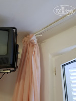 Шторы есть... но они недвижимы... т.е. не закрываются. Телевизор старый с кинескопом (!). Русских каналов нет. А те что есть... уже догадались???... показывают очень плохо, с рябью и без звука!