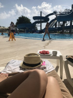 В Турции отдыхаю не первый раз, сравнивать есть с чем. Этот отель по моему мнению на 5* не тянет, только 4*... территория большая, ухоженная, много зелени, есть где погулять и пофоткаться, теннисный корт, маленький теннис, волейбол, баскетбольная площадка, занятий в свободное время полно. Так же группа аниматоров в главе Рустамчика были на высоте ?? По поводу еды выбор не очень большой, но если отдыхаете в первый раз в Турции вам и это покажется очень крутой стол. Но на самом деле все примитивно, салаты-по разному порезанные огурцы с помидорами, закуски турецкие на любителя, гарниры-рис, картошка, пюре, овощи запечённые, а так же мясо, рыба, курица. Минус в том, что каждый день одно и тоже, за 10 дней отдыха, нас уже тошнило от этой еды, и хотелось чего то нового. Номер у нас был очень крутой, с видом на море, но это был типо «люкс». В номерах уборка каждый день, смена полотенец так же каждый день, белье раз в три дня. В номере всегда было чисто. Пляж- песок, есть одно место 2-4 м где вход в море так же будет песок, остальное огромные камни, об которые легко поранится. За свои деньги отель не плохой! Но если вы едете отдыхать по полной, пить, гулять, танцевать, то лучше найти другой отель, или аниматоры предоставляюсь возможность за 10$ съездить в клуб.... а так отель очень семейный