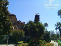ТЕРРИТОРИя отеля не самая большая по сравнению с теми отелями в которых мы были ранее но интересная красивая ухоженная очень зеленая и чистая Трехэтажные корпуса утопают в зелени высоких пальм плодоносящих гранатовых деревьев и цветущих кустарников На территории в разных местах есть живые уголки где можно увидеть лошадок попугаев ара различных птиц в том числе полюбившегося нам пеликана Очень здорово!) Два бассейна Один большой с водными горками и один средний между корпусами кроме того небольшие бассейны совсем для малышей Есть мини клуб танцевальная площадка теннисный корт и футбольное поле сцена несколько ресторанчиков по пути к морю