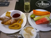 Обычный ресторан. Куча народу, на нашей памяти бывало и по- больше . Сначала расстроились по ассортименту, очень отличалс я от того, что нам попадалось раньше. Нашли плюс, меньше будем есть, меньше наберу вес. Но ни тут-то было, на третий день, после проб и ошибок, всё стало понятно, нашли свои любимые моменты и блюда, места и столики и наслаждались едой до конца отдыха. Отсутствие привычной выпечки на десерт компенсировали широким выбором сыров, вспомнили итальянцев и французов и, вуаля, у нас готов десерт: вино + несколько видов отличных потрясающих сыров.