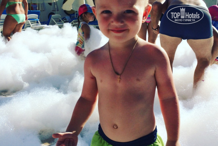Что касается питания, все очень вкусно, много, и мясо, и птица было все! Даже 2х летний Валера нашол блюда по вкусу! Так что не верьте тем отзывам, что еды там нет, кормят на убой! Единственное я брала с собой растворимую кашу для ребёнка, потому что по утрам он ест только ее, она у нас кончилась и в магазинах там я ее не нашла, так что у кого дети любят кашку, берите с собой с запасом))) Из спиртного пила только пиво и вино (красное/белое) мне нравилось, мой папа попробовал все остальное (джин, водка,виски, раки, мартини) говорит тоже нормальные. Ценители элитных напитков, вам дорога в дютифри или в отель который стоит дороже. Из лимонадов в барах было все (кола, фанта, спрайт, минералка), соки тоже были в автоматах. Питание на пляже тоже есть, овощи, котлетки, лепешки разные, напитки только безалкогольные, пиво платное 3$ вроде. Само море просто сказка, тёплое, заход песочек, чистенько, шезлонги, матрасики, зонтики как всегда. Когда мы отдыхали были волны, но это нам не мешало. Полотенца пляжные под залог и смена их на чистые за д-ра. плату, дорога до пляжа далековато, но это не такая уж проблема. На бассейне тусня, музон, горки, детский бассейн с маленькой горочкой, купались все и родители и дети, не какой заразы мы там не видели и сами не болели! Анимация! Все кто говорят что анимация слабая врут! Девчонки просто бомбические! Весёлые, общительные, просто супер! На бассейне проводят гимнастику, водную гимнастику, водное поло, разные развлекательные игры, кидают дротики, играют в пинг-понг, пару раз я застала пенную вечеринку. Детская анимация нереальная, мой сын до сихпор танцует их танцы, дети души нечают в аниматоре Ксюше, да и я если честно тоже, каждый день мы ждали вечера что бы ребёнок потанцевал! После детской начинается взрослая анимация, тоже очень понравилось, приезжал дядя созмеей, факир, гимнастки, девушка танцевала танец живота, турецкие национальные танцы мужчин в юбках, всякие разные шоу типа мисс и мистер Арабелла, в общем было весело! После девчонки звали всех в клубы, к сожалению я не разу не съездила тк ребёнок маленький, но говорят там классно. Персонал отеля очень отзывчивый все ребята с ресторана, с баров, мальчишки с магазинов все очень приветливые и общительные! В общем отпуском давольны все и родители и я и ребёнок!